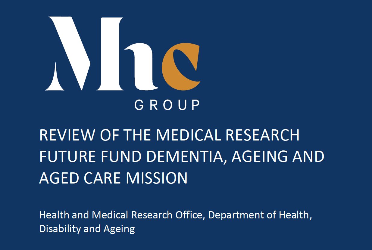 MHC reviewed the Medical Research Future Fund (MRFF) Dementia, Ageing and Aged Care Mission’s progress in: a) supporting dementia, ageing and aged care research in Australia; and b) meeting the objectives set out in the: